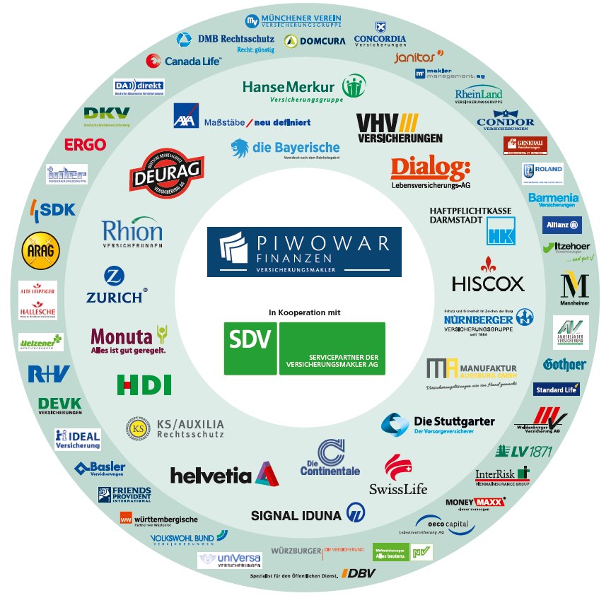 Współpracujemy z większością towarzystw ubezpieczeniowych na rynku niemieckim. Oto wykaz z listy naszych partnerów: